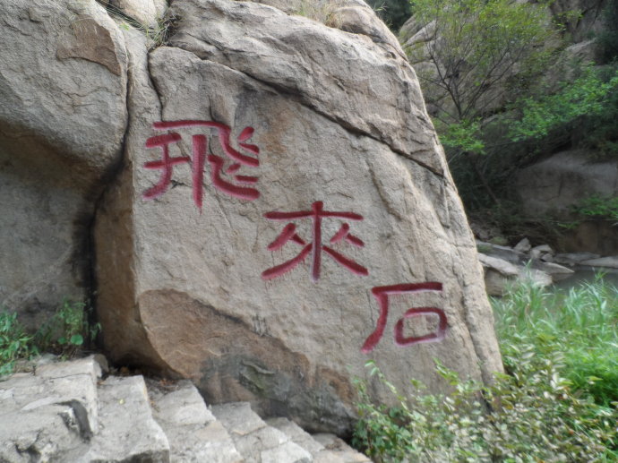 上個(gè)世紀(jì) 70年夏季的一個(gè)中午,一聲響雷過(guò)后,左側(cè)山崖上方40米處的一塊巨石被震落下來(lái),落于山澗之中,稱為飛來(lái)石。