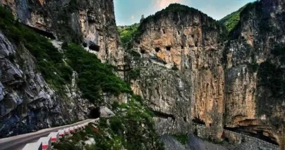 井底村著名的掛壁公路,全長1500多米長的“掛壁公路”, 39個窗口。是井底村人歷經(jīng)14年的時間,在懸崖峭壁上艱難地開鑿而成的。