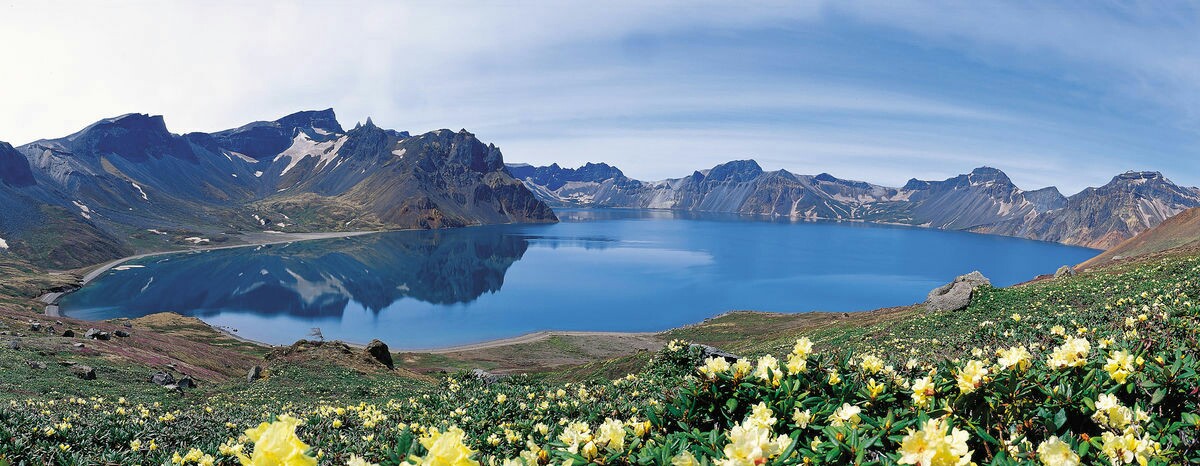 你知道長(zhǎng)白山的名字來(lái)源嗎?當(dāng)你自己到天池的山頂遠(yuǎn)眺,謎底自然解開:就是夏天,你也能看到連綿的白色。再配上火山口的一汪藍(lán)綠色的水,你就知道為什么長(zhǎng)白山天池那么有名了!