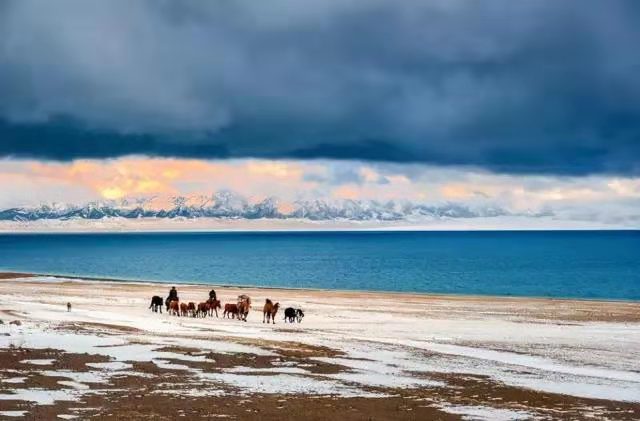 途中午餐,下午到達(dá)賽里木湖,這個(gè)季節(jié)的賽里木湖岸邊還沒(méi)有一望無(wú)際的野花,但是有剛剛消融的冰雪,運(yùn)氣好的話還能拍到藍(lán)冰(和貝加爾湖的藍(lán)冰一樣漂亮)。