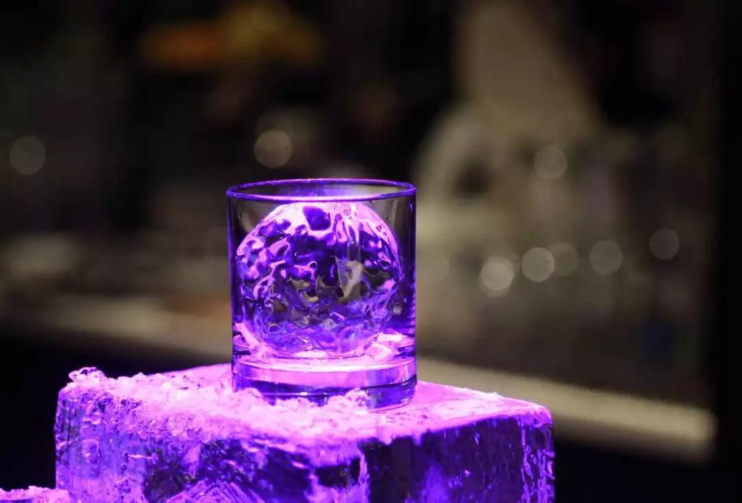 當(dāng)然,注重內(nèi)在的同時(shí),也不能忽視了外表。冰除了可以冷卻、稀釋酒,平衡口感外,還璀璨異常!手工雕琢的冰塊,可胖可瘦,可高可矮,形狀可以千奇百怪。切成鉆石形狀的冰,在燈光下晶瑩透亮,美輪美奐。