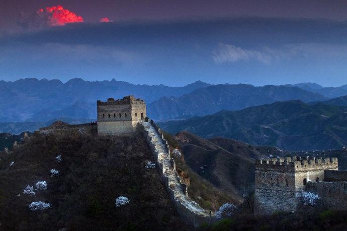 【金山嶺長城】障墻、文字磚和擋馬石是金山嶺長城的三絕,素有“攝影愛好者的天堂”美譽(yù)。金山嶺長城始建于洪洪武元年(公元1368年),為大將徐達(dá)主持修建;隆慶元年(公元1567年)抗倭名將薊鎮(zhèn)總兵官戚繼光、薊遼總督譚綸在徐達(dá)所建長城的基礎(chǔ)上續(xù)建、改建;金山嶺長城是現(xiàn)保存最完好的一段明長城,被專家稱之為明長城之精華;依山設(shè)險、憑水置塞,雄城起伏似鋼墻鐵壁;雕樓林立,如甲兵護(hù)衛(wèi),“一夫當(dāng)關(guān),萬夫莫開”,以其視野開闊、敵樓密集、建筑防御體系功能奇特而著稱于世;金山嶺長城,一年四季變換著不同的景色,春到金山嶺,滿山遍野一片嫩綠,桃花、杏花以及各種不知名的野花競相開放;入夏,郁郁蔥蔥的樹木,潺潺的山間溪水,五顏六色的彩霞和雨天空出現(xiàn)的彩虹,把金山嶺長城打扮得絢麗多姿;金秋時節(jié),長城內(nèi)外,漫山紅遍,層林盡染,各種野果掛滿枝頭;嚴(yán)冬雪后,這里變成了銀色的世界。蜿蜒起伏的長城,就象飄落在萬山叢中的一條玉帶,忽高忽低,忽左忽右,忽隱忽現(xiàn),那一座座敵樓,在陽光的映照下,就象鑲在玉帶上的一顆顆珍珠。