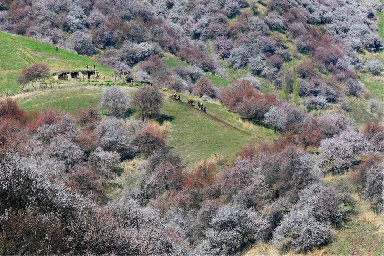 吐爾根杏花溝位于新疆伊犁新源縣吐爾根鄉(xiāng)。吐爾根杏花溝是一片中世紀(jì)遺留最大的原始野杏林,集中分布于鞏乃斯河北岸,占地有3萬多畝,是新疆野杏林比較集中的地區(qū)之一。