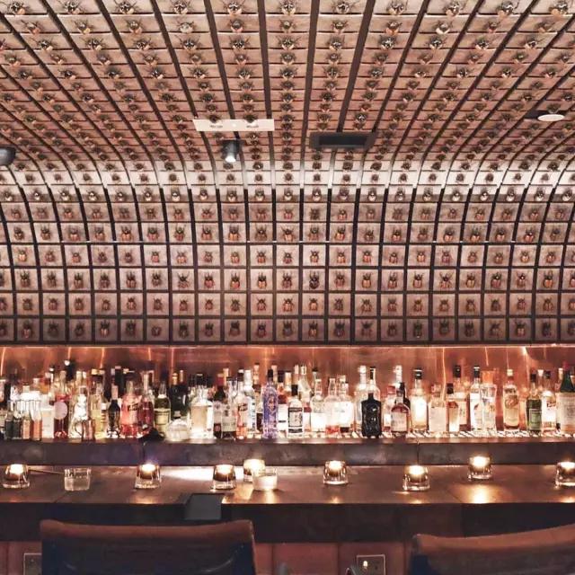 J.Boroski 其實跟 The Iron Fairies 一樣,出自 Ashley Sutton 和 Joseph Boroski 之手??臻g格調(diào)更時尚和華麗,但最讓人震撼的吧臺后面整面墻的甲蟲裝飾一眼就能看出是他的設(shè)計。