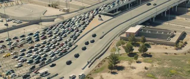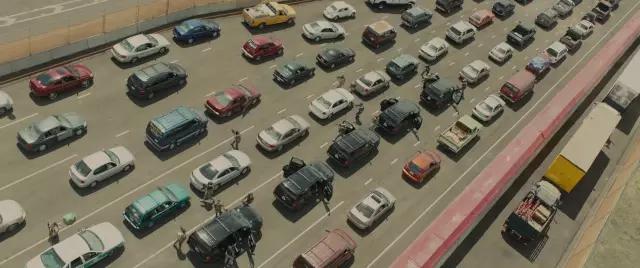 AC:電影前20分鐘是一段非常有沖擊力的片段,Emily Blunt飾演的角色和她的隊伍開進華雷斯(邊境城市)。這個片段里混合航拍鏡頭和在車上的鏡頭,展現(xiàn)他們越過邊境