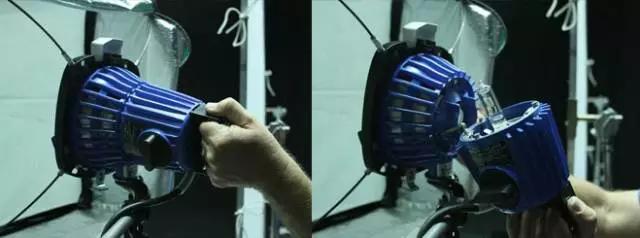 有時候需要頭頂上方的軟光照明,這時候就需要使用“雞籠”燈具了,它是在一個無蓋金屬箱里面裝上6個燈泡,這些燈泡分別是100w的銀碗球燈,這個設備里裝有的漂白過的棉布和絲質(zhì)織品可以讓光得到更充分的散射。