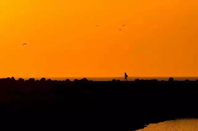 剪影中比較常見的背景元素就是空曠的海邊、水邊、草地等,利用晚霞的余輝,讓畫面更具色彩對比的效果。