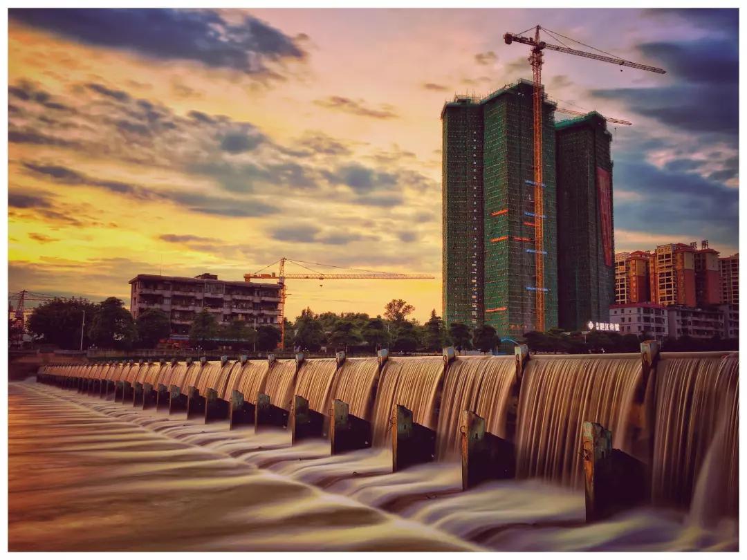 最后是建筑場(chǎng)地。進(jìn)行逆光拍攝,正好將夕陽安排在還未建成的建筑物鏤空里,別有一番韻味。