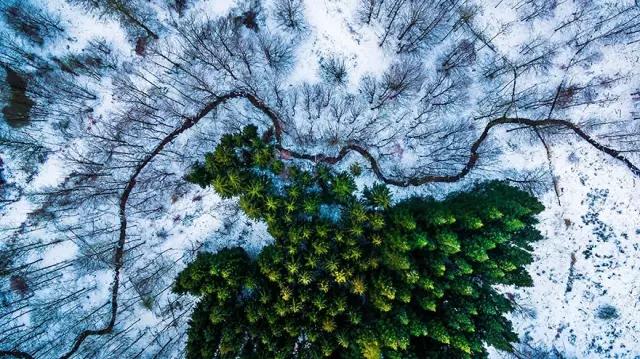 冬季的森林公園,白綠交映。看了這幅圖,讓人不禁想起:冬天來了,春天還會遠么?