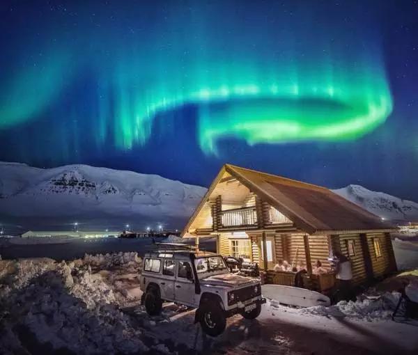 零下20度的夜晚,在溫暖的木頭房子外,和朋友們一邊聊天一邊欣賞難得一見極光,還有什么比這更愜意的事呢?