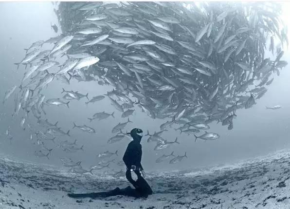 海底潛水,有幸看到成千上萬只魚群聚集而來,這陣勢好像要吃掉這個異類一樣。