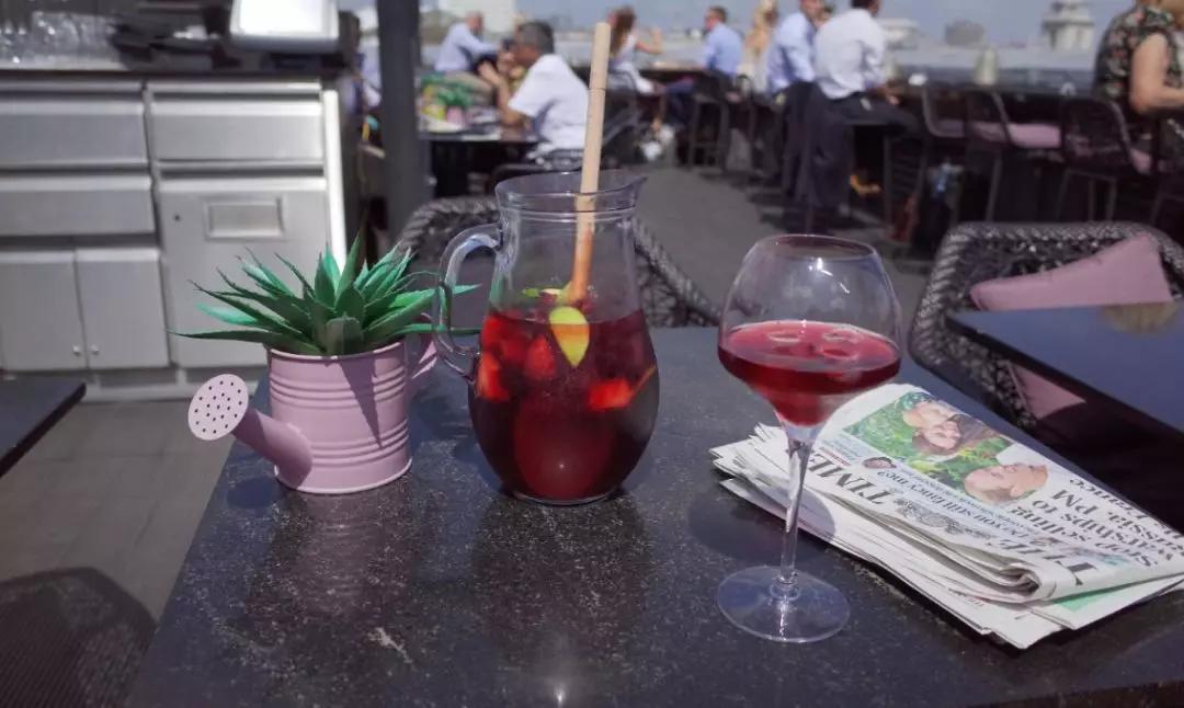 這家酒吧屬于Trafalgar Hotel 內(nèi)部的屋頂酒吧,最有名的點(diǎn)是因?yàn)樗驮谔乩訌V場(Trafalgar Square) 正旁邊,所以邊喝酒可以邊看著廣場的車水馬龍與人們,另一面則看得倫敦眼。這間屋頂酒吧只有在春夏季節(jié)時(shí)才啟用,入場也是從飯店大聽坐電梯上樓,常常到下午會人潮爆滿的情況,而且四點(diǎn)后會收入場費(fèi)£5,自己要抓一下時(shí)間。之前跟哥們來常常會點(diǎn)一壺Sangria 喝酒聊天曬太陽,非常愜意。