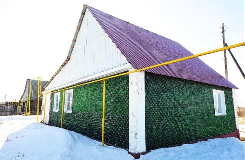 用酒瓶建立一間屋子,這絕對是酒瓶DIY界的超高級玩家。在俄羅斯城市車?yán)镅刨e斯克就有這樣一位神人,使用12000個空香檳瓶,歷時三年,建造了這個99平方米的房間。
