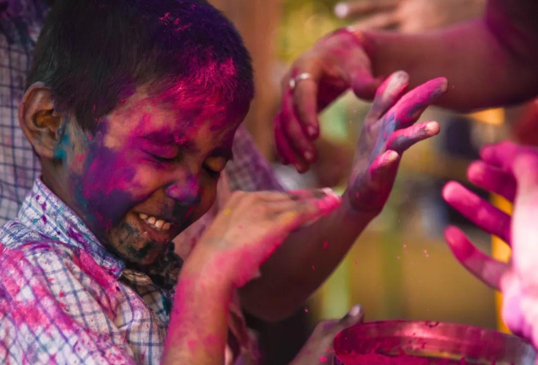2019 年3月19 日,在印度孟買一所學(xué)校,孩子們慶祝即將到來的灑紅節(jié)。