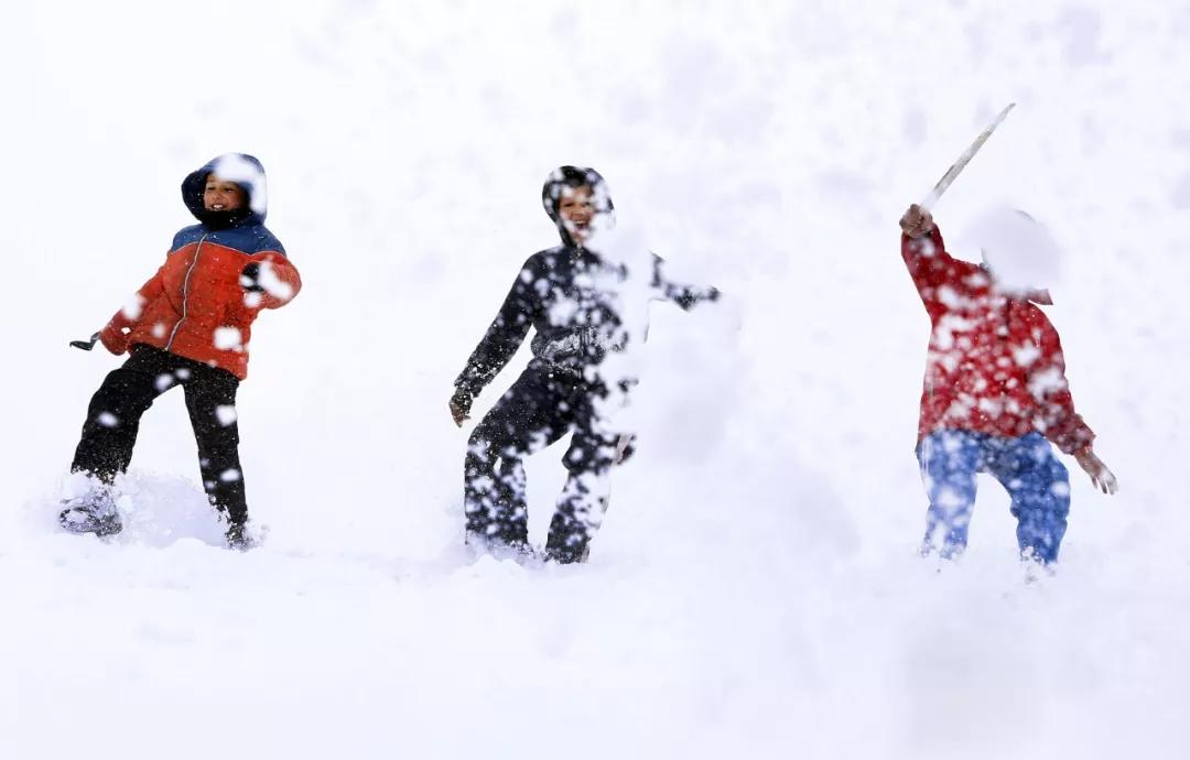 2019 年1月4日,在阿富汗喀布爾郊區(qū),孩子們在雪中玩耍。阿富汗喀布爾迎來2019年第一場雪。