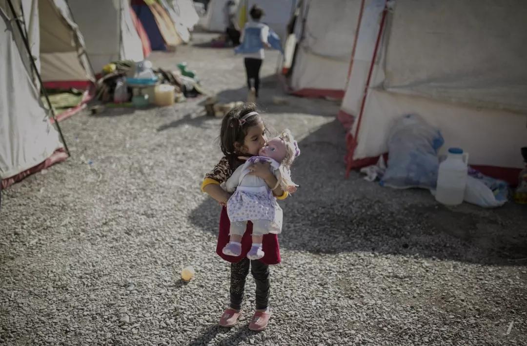 2017 年11月15日,在伊朗克爾曼沙阿省的薩爾波勒扎哈卜,一個小女孩在帳篷外抱著玩具娃娃。據(jù)伊朗媒體15 日報道,伊拉克與伊朗邊境地區(qū) 12 日晚發(fā)生的強烈地震已在伊朗震區(qū)造成 474 人死亡,另有 9388 人受傷。