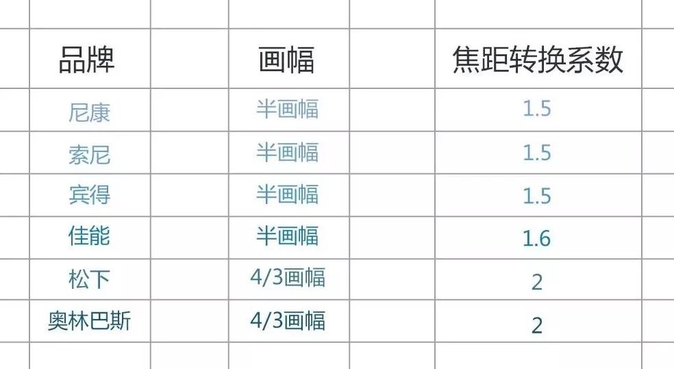 那么,如何進(jìn)行有效的轉(zhuǎn)換?可以看下各大相機(jī)品牌的轉(zhuǎn)換系數(shù)。