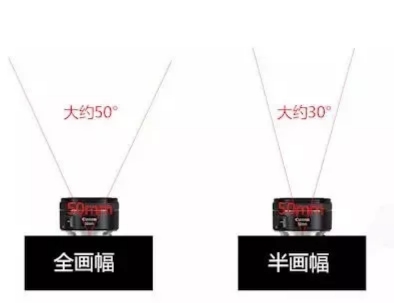 還需要注意一點(diǎn),相同的焦距鏡頭用在全畫(huà)幅、半畫(huà)幅相機(jī)上也是有一定差距的。比如,50mm的焦距鏡頭用在全畫(huà)幅機(jī)子上,它的視角就是50°左右,而用在半畫(huà)幅機(jī)子上視角就只有30°左右。