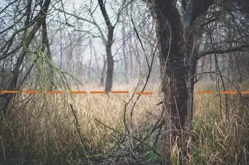 說到這里,作者還要給大家說明一下:所謂的地平線、水平線并不一定非要是肉眼很明顯的看到的一條線,它也可以是存在于攝影師腦子里的一條有意識(shí)的線條。比如,當(dāng)我們在拍攝樹林的時(shí)候,很難一眼就看到水平線,只能依靠一些參照物來體現(xiàn)。