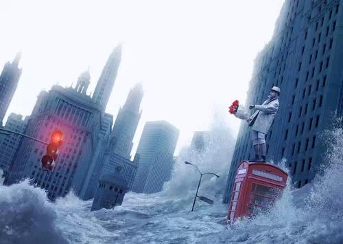 為什么這樣說?因?yàn)楸绕鹚降牡仄骄€,略帶傾斜的地平線會(huì)更加具有動(dòng)感,比如下面這張海報(bào)圖(不是真實(shí)拍出來的,只是拿來做個(gè)例子),它沒有一個(gè)明確的水平線,但是根據(jù)建筑物來參考,很明顯它是傾斜的,感覺人物站不穩(wěn)隨時(shí)都要倒下去,這樣就營造了一種緊張的氛圍,有助于表達(dá)情緒。