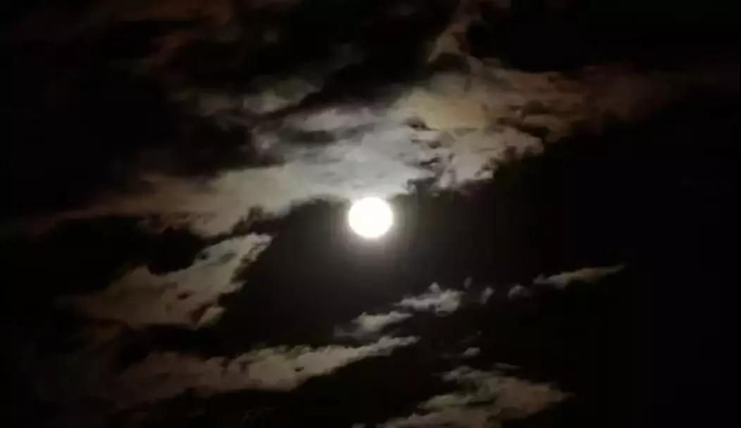 由于整體環(huán)境光的不足,相機(jī)在自動(dòng)曝光模式下很可能開(kāi)大光圈或調(diào)高快門(mén),導(dǎo)致本來(lái)就挺亮的月亮過(guò)曝: