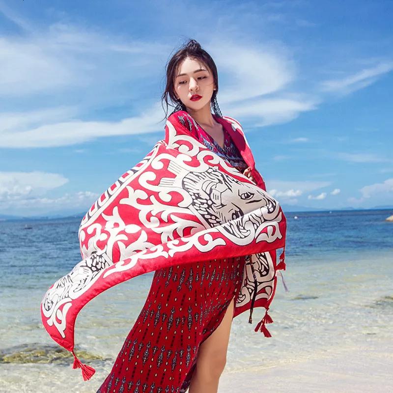 特別是在海邊旅行,因?yàn)楹oL(fēng)很大很容易將頭發(fā)吹亂,整個(gè)人的形象也會(huì)大打折扣。如果將絲巾圍在頭發(fā),就可以將凌亂的頭發(fā)蓋起來,注意,這里可以稍微將絲巾往后拉一點(diǎn),露出一絲頭發(fā)會(huì)看起來更加的風(fēng)情萬種。