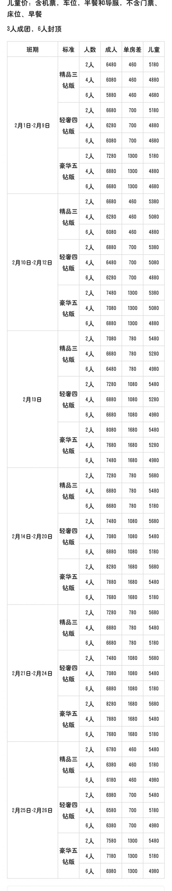 標準價格: 成人  7880 /人, 兒童  5680 /人