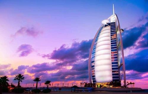 后乘車前往朱美拉公共沙灘,車觀【朱美拉清真寺】,【迪拜酋長皇宮】(外觀),外觀世界最著名【七星級帆船酒店】,奢華的代名詞;