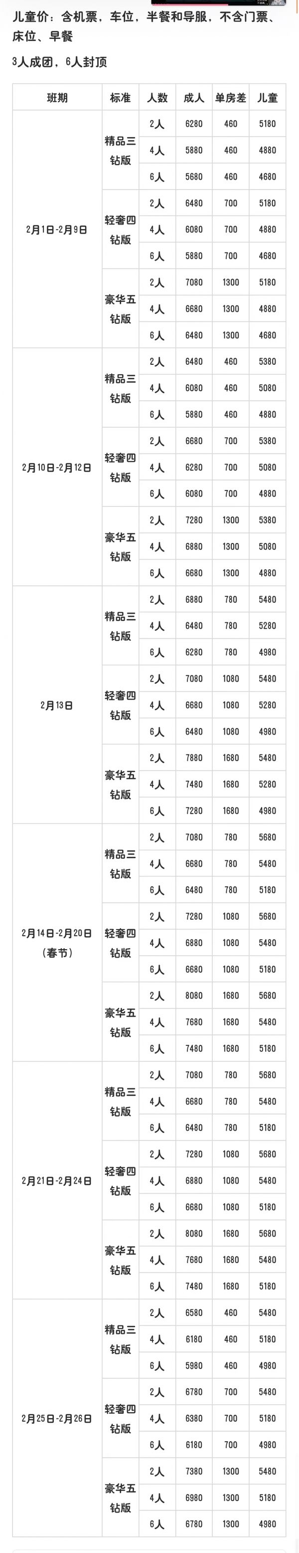 標(biāo)準(zhǔn)價(jià)格: 成人  7480 /人, 兒童  5680 /人