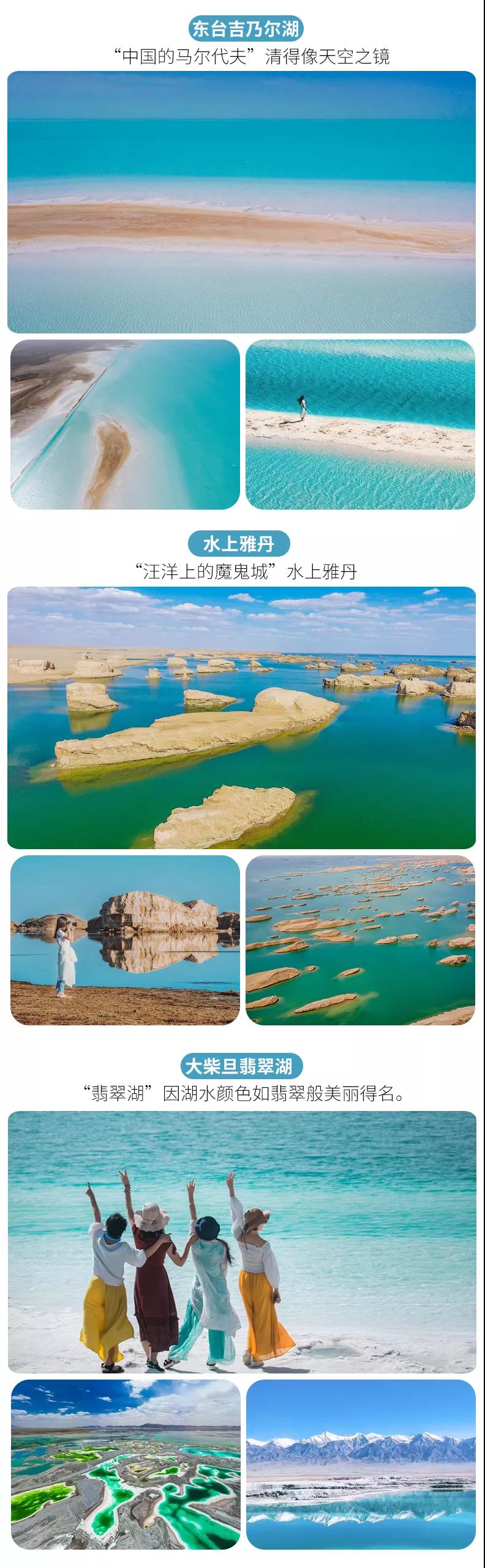 (4)茫崖翡翠湖、東臺吉乃爾湖、艾肯泉等尚未設(shè)立為景區(qū),但如當(dāng)?shù)厝耸杖…h(huán)保費等費用與我方無關(guān),望您諒解。