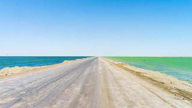 東臺吉乃爾湖的神奇之處在于一條泥路將湖水一分為二,一半是純正的蒂芙尼藍,一半是含鹽量極高的純粹綠;乃爾湖岸邊盡是覆蓋著的白色結(jié)晶,湖周圍是大片的雅丹地貌,搭配上顏色干凈到極致的湖水、西北特有的廣闊無垠的天空,純粹而強烈的視覺沖擊,這方圓百里大漠戈壁無人區(qū)的珍寶明珠,這只屬于大自然的神秘顏色,讓你仿若來到了世界的盡頭,讓你感受一種歸于自然的內(nèi)心平靜。