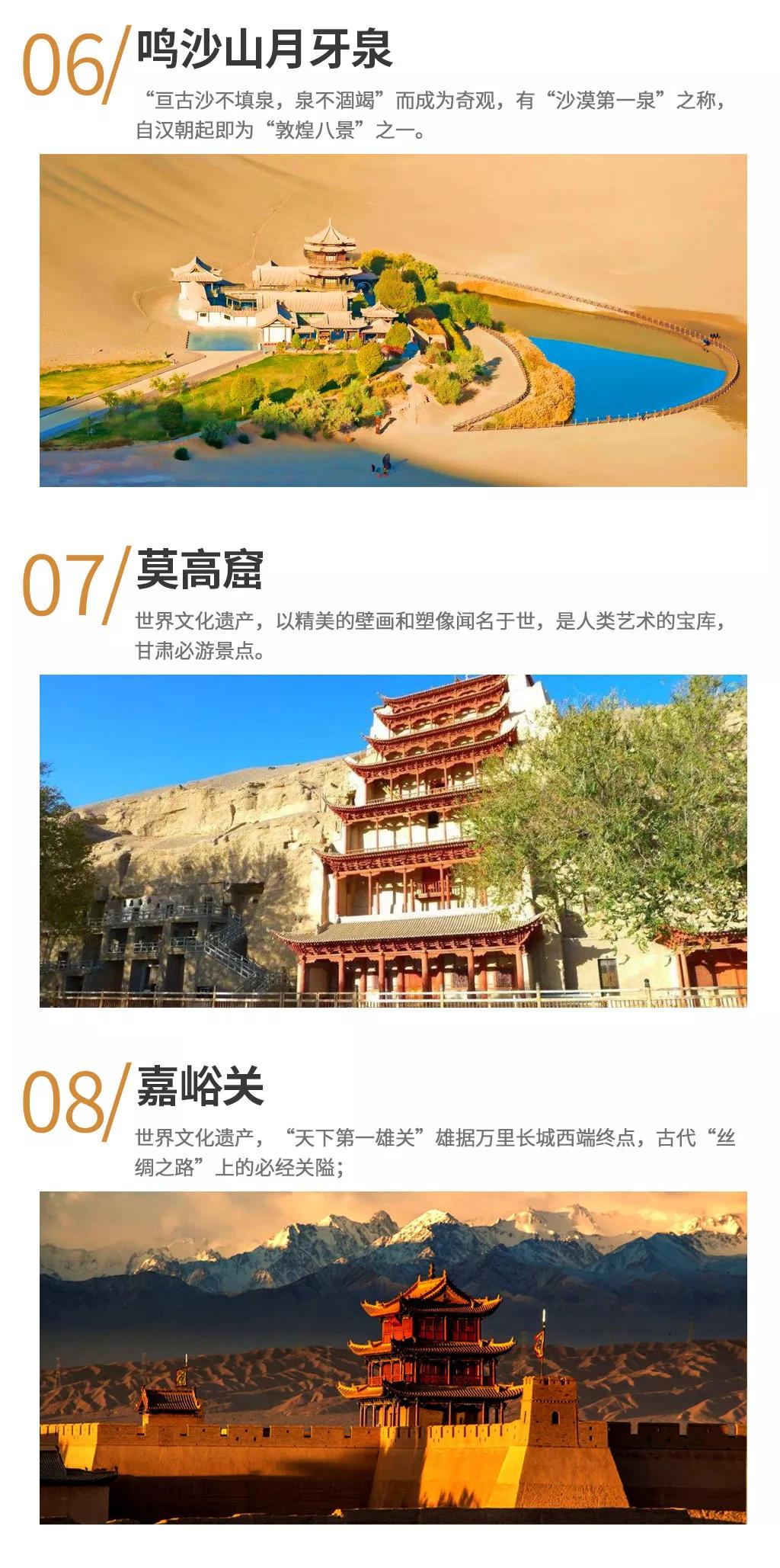 溫馨提示:西北地區(qū)天氣干燥,旅途的過程中請(qǐng)大家多喝水,注意防曬;敦煌《又見敦煌》演出,旅游淡季298元/人,旺季368元/人起;果木烤全羊費(fèi)用根據(jù)羊的大小決定,由參與活動(dòng)的游客均攤,一般10人一桌,人均消費(fèi)160元左右。