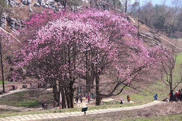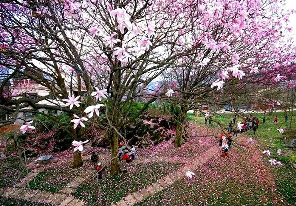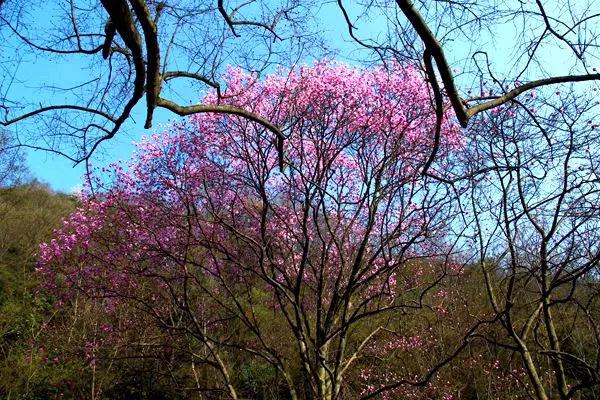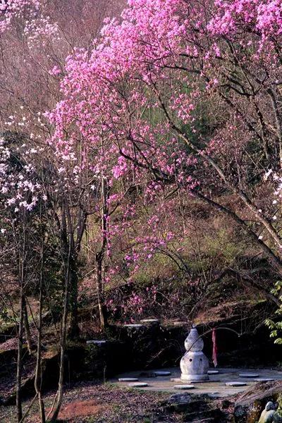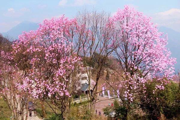 在漢中的油菜花競相開放的時候,北川藥王谷的野生辛夷花也是風(fēng)華正茂的時候。漫山遍野的粉色花朵爭奇斗艷,蔚為壯觀。