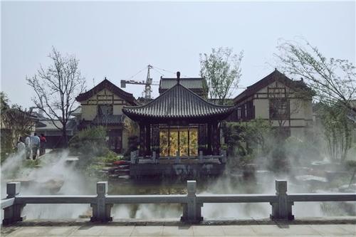 云臺古鎮(zhèn)景觀的打造以“鄉(xiāng)愁”為主題,最大限度的展現(xiàn)詩酒田園自然之美,將“竹、林、花、菜、果、水”等果蔬、農(nóng)作物的鄉(xiāng)村元素通過藝術(shù)設計的升華,植入到古鎮(zhèn)的每個角落。在公共開放休閑區(qū)域設計散點式果園、花田、稻田等景觀空間,植物、石材、木、磚、陶、水車、石墨、古井、古樹、棚架等鄉(xiāng)土自然材料,通過造景手法和簡單的藝術(shù)加工處理,處處散發(fā)著濃郁的鄉(xiāng)愁氣息。