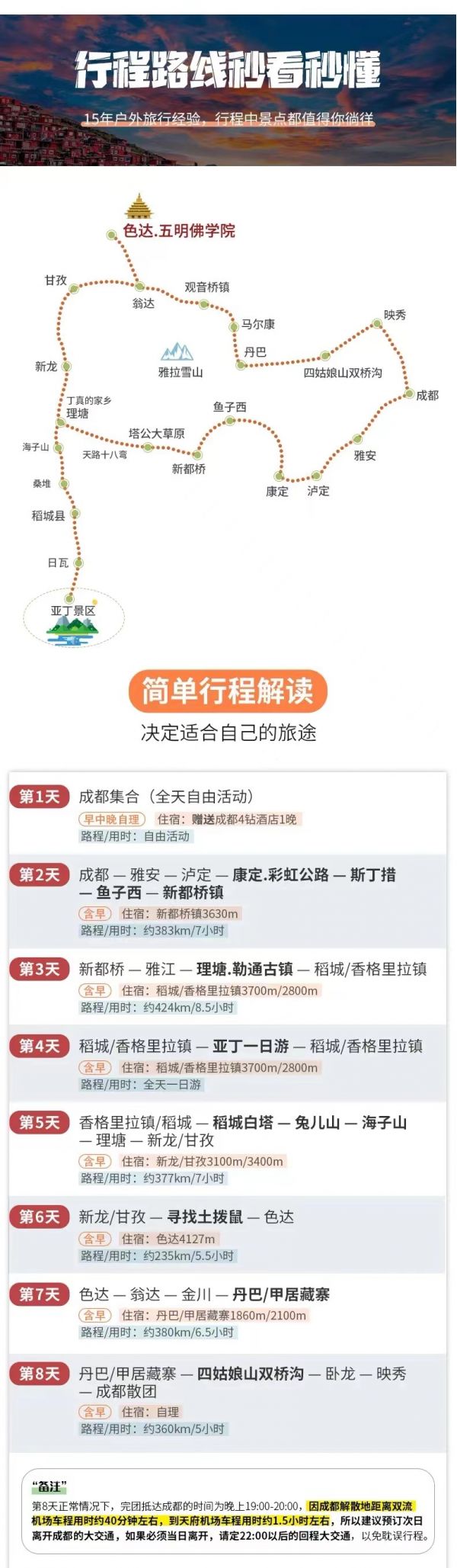 (10)行程中不只色達(dá)一個景點,還有更美好的景點等待大家,預(yù)祝大家旅途愉快!
