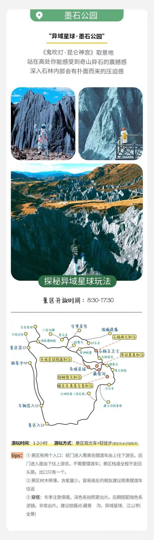 然后我們來(lái)到神秘的異世界,墨石公園有著許多千姿百態(tài)的奇幻墨石,忽而是高聳綠地又忽而裸露出冷峻的黑灰?guī)r面,參差起落極具外星球般的異域風(fēng)情。