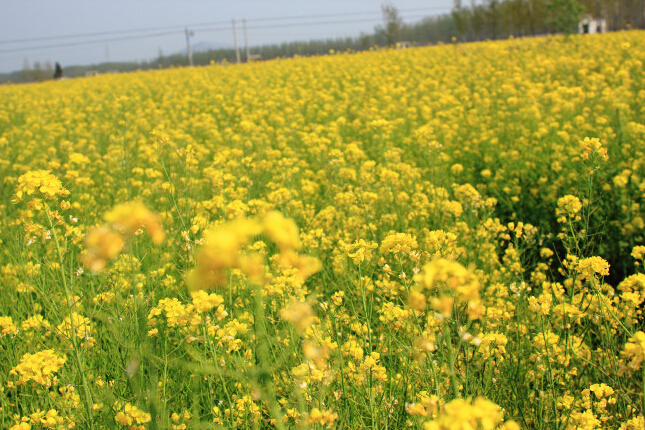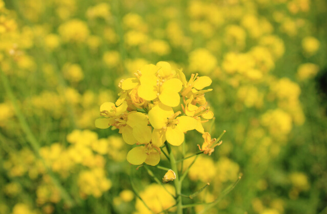 滿地的油菜花千姿百態(tài)、花團錦簇,有的星星點點,還是花骨朵,好像有點害羞,又好像不給人看它的真面目。還有的露出了金黃色的臉龐??拷勔宦勥€有淡淡清香,沁人心脾,仔細瞧!上面還有幾只蜜蜂,在辛勤勞動呢!花兒真多。每株油菜上有不少枝,枝上生杈,杈上又生杈,每枝杈上開滿了花。俯下身子看,菜花不計其數。突然,一只花蝴蝶飛來,一下飛,一下落,興奮地玩耍著。春風吹拂,菜花搖弋,仿佛滿金流動。田園風光使人愜意。