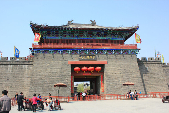 水滸影視城以《水滸傳》中描述的人物故事為背景,充分展現(xiàn)水滸故里歷史風貌和民俗人情,主要建設了王爺府、太師府、太尉府、青樓、樊樓、甕城、御龍坊、東京汴梁御道、紫石街等仿宋代建筑,古風濃郁,工藝精湛,細致逼真,進入城中,猶如跨入歷史;漫步城中,宛若暢游千年。