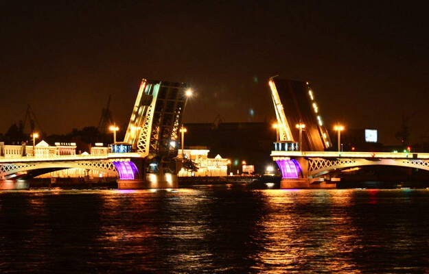 今天部分拍攝點(diǎn)包括阿芙樂(lè)爾號(hào)巡洋艦,涅瓦大街,以及最酷的項(xiàng)目,彼得堡開(kāi)橋盛景。這是最酷的安排項(xiàng)目,是這座城市在夜晚最具有魅力和有意思的項(xiàng)目,所有的橫跨在涅瓦河上的大橋都會(huì)在凌晨1點(diǎn)-凌晨5點(diǎn)間打開(kāi),保重河道通行,讓大型貨運(yùn)輪渡通行,因?yàn)槟吆邮锹?lián)通芬蘭灣和和俄羅斯內(nèi)陸湖泊的唯一通道。