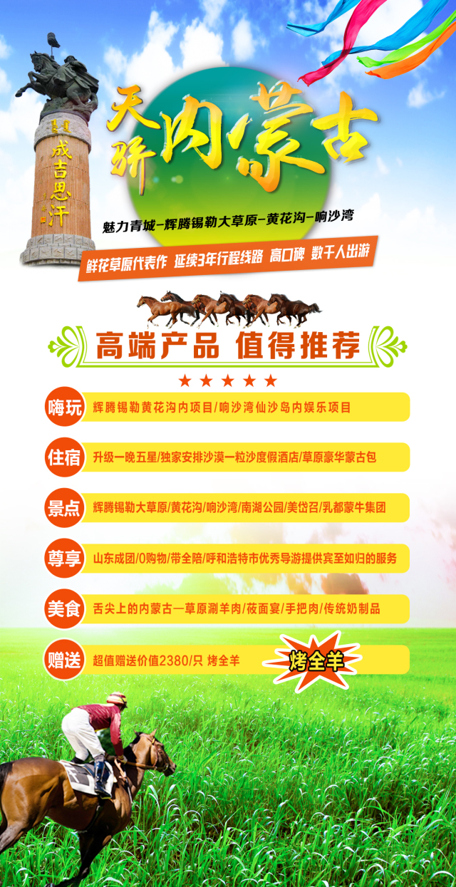 【今日行程】乘坐合適航班或車次赴中國優(yōu)秀旅游城市-歷史文化名城呼和浩特市。抵達后,導游在出口處舉著您的姓名牌或“山東貴賓一行*人”的標志接機/站;接機后入住賓館,晚上您可自行游玩【呼和浩特-伊斯蘭風情一條街】