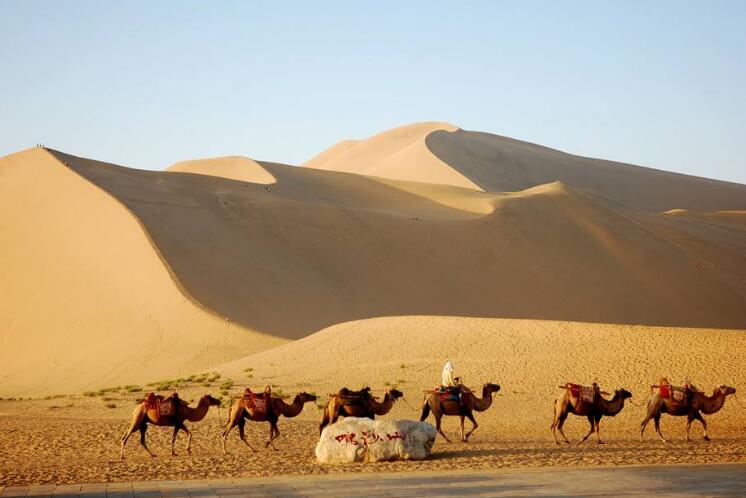 上午乘車前往【鳴沙山月牙泉】,欣賞日出(游覽時間約2小時);【鳴沙山月牙泉】古往今來以“山泉共處,沙水共生”的奇妙景觀著稱于世,被譽為“塞外風光之一絕”1994年被定為國家重點風景名勝區(qū),鳴沙山有流沙積聚而成,沙體遇到摩擦震動,便會殷殷發(fā)聲,輕若絲竹,重如雷鳴,故名“鳴沙山”,月牙泉位于鳴沙山北麓,因外形酷似一彎新月,故名“月牙泉”。千百年來不被流沙淹沒,不因干旱而枯竭。下午大家適時返程。