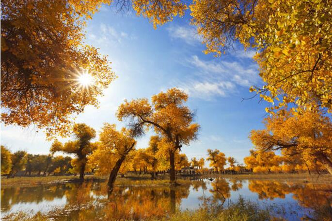 每年秋天,九月底到十月中旬的金色秋天(9月25日—10月15日),是去額濟納旗看胡楊林的最佳季節(jié)。當(dāng)?shù)卣磕甓紩?月25號左右向林區(qū)灌溉水,使胡楊林在十一黃金周期間將自己最美的景色呈現(xiàn)在游人眼前。