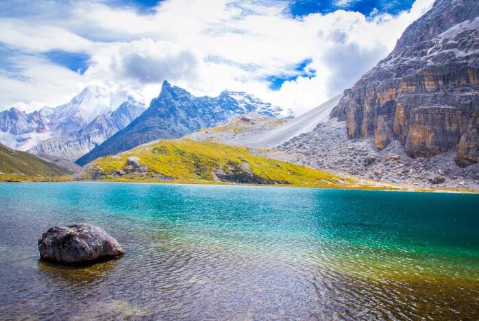 早餐后可以繼續(xù)進入景區(qū)觀賞【仙乃日神山】下的圣湖【卓瑪拉措】又名珍珠海(二進溝乘坐觀光車60元費用自理)。到達景區(qū)后步行到達沿著【沖古寺】仰望仙乃日神山而上(往返約3公里步行約2小時)欣賞沿途的美景,遠眺仙乃日神山(海拔6032米,慈目注視腳下人間仙境,夏天雪線下瀑布成群連片,氣勢宏偉壯觀,山腳下分布著由草地、森林、湖泊完美組合的景致,美不勝收。仙乃日,藏語意為“觀世音菩薩”,是稻城三座神山的北峰。是三座神山中海拔最高的一座。其狀巍峨,象菩薩端坐在蓮花臺上,渾身浸透高貴氣質的“仙乃日”,頂峰終年積雪不化,其山形酷似一個身體后仰的大佛,傲然端坐在蓮花座里,她的懷中抱著一個巨大的佛塔,陽光照在仙乃日神山上會金光燦燦。一步一步來到美如仙境般的珍珠海,藏語中稱珍珠海譯為“卓瑪拉措”密林中的珍珠海如一顆鑲嵌在蓮花寶座上的綠寶石,碧波蕩漾,雪山和樹木的倒影一起倒映在碧綠的珍珠海中。組成一幅仙境般的圖畫,不是人間,勝似人間。