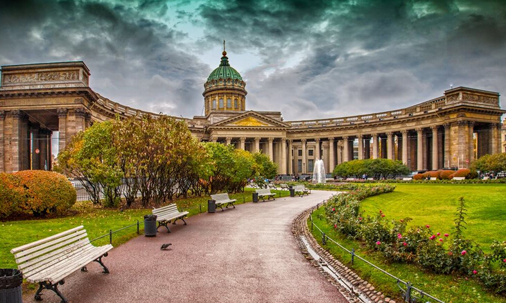 【十二月黨人廣場和青銅騎士像】(約15分鐘)坐落在圣彼得堡涅瓦河岸,鄰近海軍司令部大樓,廣場中央有一個圓形的大草坪,中央豎立著彼得大帝青銅騎士像,它是由普希金的抒情詩而得名。這里是城市的標(biāo)志和歷史印記點(diǎn)。