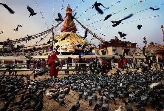 前往“博達哈大佛塔”(Boudhananth 世界文化遺產(chǎn))是世界上最大的佛塔之一,也是藏傳佛教的圣地,俗稱“小西藏”,在宏大的白色穹形上矗立著一個方形的塔,四面都畫有巨大的、洞察世俗的佛眼,晚餐后入住酒店;