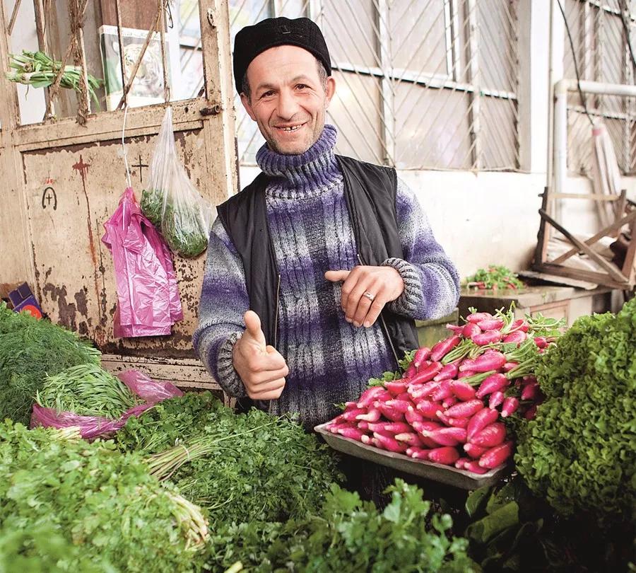 新西伯利亞市中央市場是水果、蔬菜的集散地,室內(nèi)市場多販賣蔬果和香料,室外是附近農(nóng)戶前來擺攤的露天市場。草莓、樹莓、藍莓、鵝莓、紅醋栗、桑葚、黑加侖、小紅莓、云莓……高飽和度的色彩,讓這些莓果像一幅失真的油畫般呈現(xiàn)在眼前,還是會散發(fā)香氣的油畫。攤主老太太們大多包頭巾,坦然地抽著煙喝著酒,一邊販賣以“籃”和“筐”為計數(shù)單位的莓果。