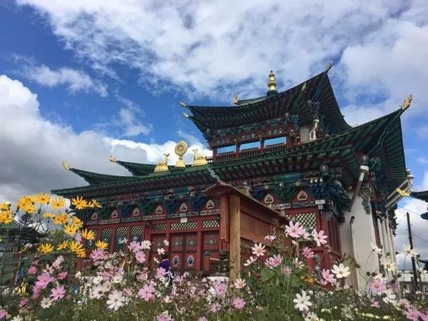 眾所周知,俄羅斯的建筑大多都是洋蔥頂或是斯大林式的巴洛克風(fēng)格,但喇嘛教卻散發(fā)著濃濃的藏傳佛教的氣息。整個(gè)建筑群坐落在山腳下地勢(shì)開闊的峽谷里,藍(lán)天白云下,大殿金色的屋頂熠熠生輝,莊嚴(yán)華美。