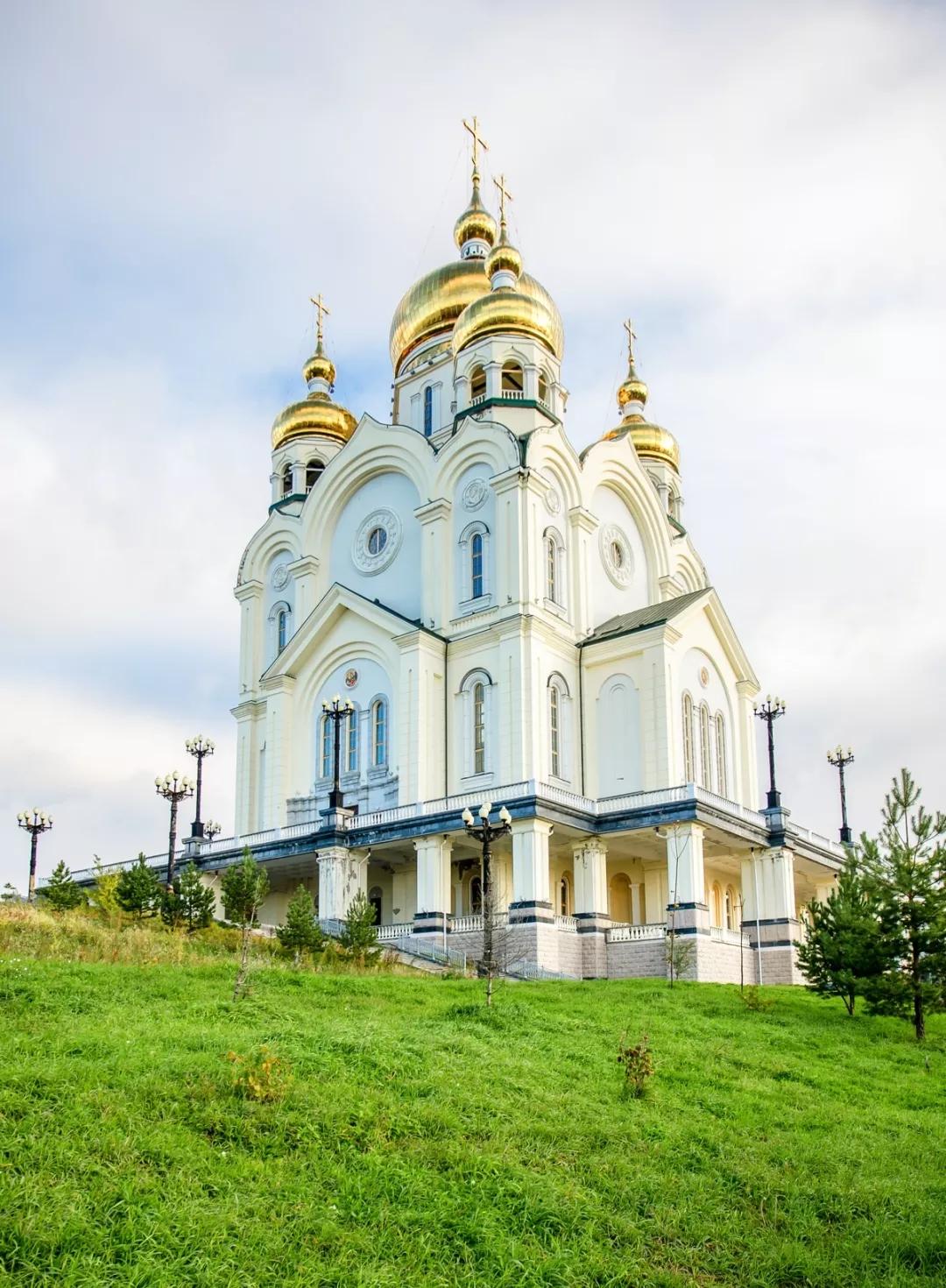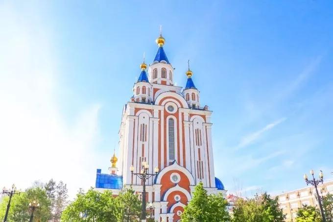 哈巴羅夫斯克最經(jīng)典的建筑莫過于這里最大的東正教教堂——金頂教堂,金光燦燦的洋蔥頭據(jù)說用了3噸多的俄羅斯特產(chǎn)紫金融造而成,可以說是相當(dāng)奢侈了。