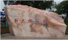【斯大林公園】與太陽島隔江相望。以仿造俄羅斯古典式建筑風(fēng)格和遍布全園的"五色草花壇",以及分布在綠地之間的"天鵝展翅"、"三少年"、"起步"、"跳水"、"舞劍"等十六組藝術(shù)雕塑而馳名海內(nèi)外。