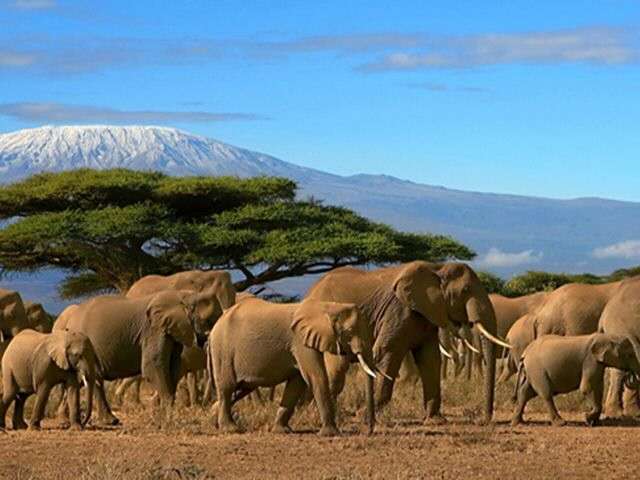 安波塞利國(guó)家公園(Amboseli Park)是非洲度假勝地之一,位于肯尼亞與坦桑尼亞交界地區(qū),肯尼亞邊境,在這里可以清晰地看到海拔5895米的非洲第一高峰乞力馬扎羅山。接近赤道的乞力馬扎羅山頂終年覆蓋著積雪,山下莽原景色優(yōu)美,安波塞利國(guó)家公園位于公園面積392平方公里,由于臨近云霧繚繞的非洲之巔——乞力馬扎羅山,吸引著一批批前來觀光的游客。安波塞利就是“干涸的湖”的意思。
